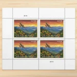 Design by Dan Cosgrove, it pictures mountain scenery near Newfound Gap with a red-tailed hawk.